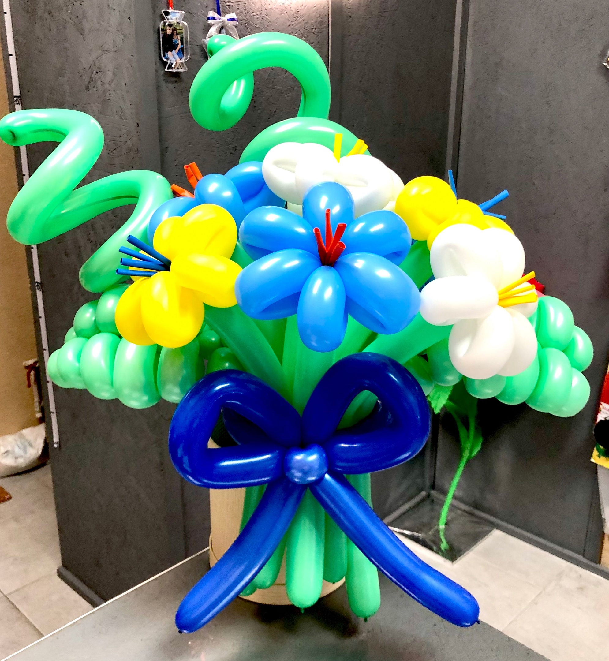 Букет из ШДМ: 9 цветов, 2 спирали, 2 листочка, бант.